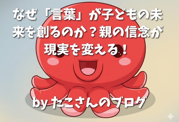 こんにちは、たこさん先生です!✨ 前回の記事では、「信念のプログラミング」として、親の言葉や心のつぶやきが、お子さんの未来やあなたの現実を創り出す魔法の力を持っていることについてお話ししました。 でも、頭では「ポジティブな言葉をかけたい」... -