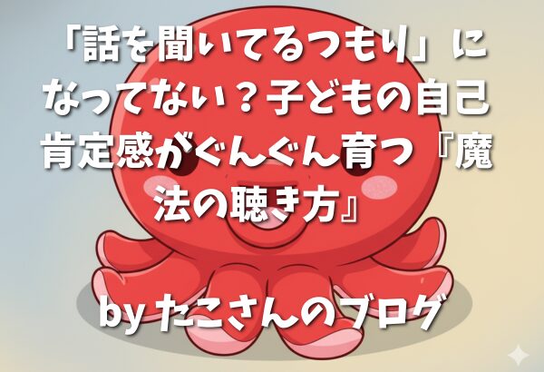 こんにちは、たこさん先生です!🐙✨ 前回の記事では、子どもの話を聴くための「基本の姿勢(手を止める、体を向ける、目を合わせる)」についてお話ししました。 「意識してスマホを置くようにしたら、子どもが嬉しそうに話し始めました!」 「目を見て話... -