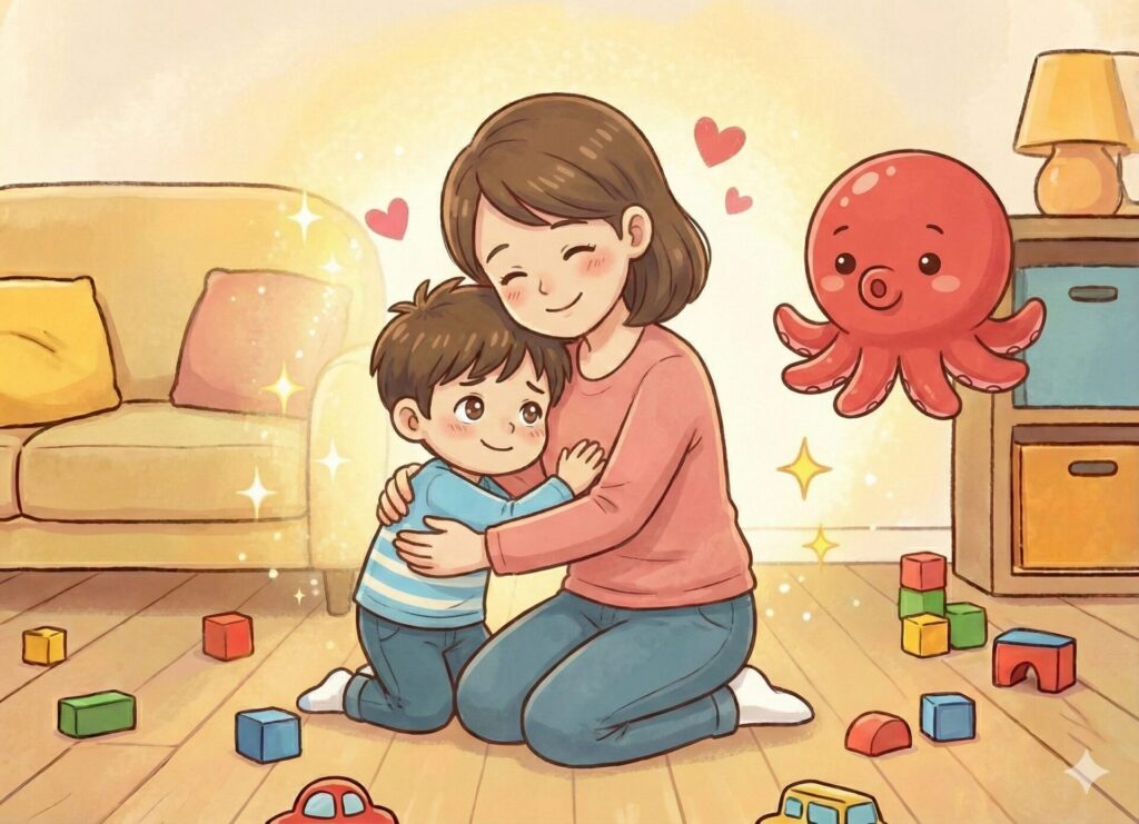 - 感情を代弁する(共感): 双方の言い分を聞き、それぞれの「気持ち」を代弁します。「〇〇ちゃんは、これが使いたかったんだね」「◇◇くんは、急に取られて嫌だったんだね」。「どっちが悪い」とジャッジしないことが重要です。